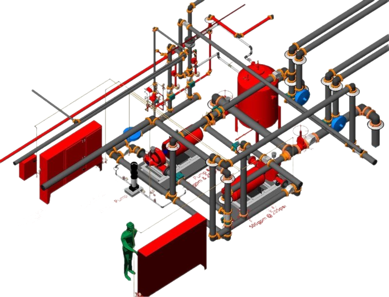Khối bơm – van – đường ống – tủ trung tâm điều khiển